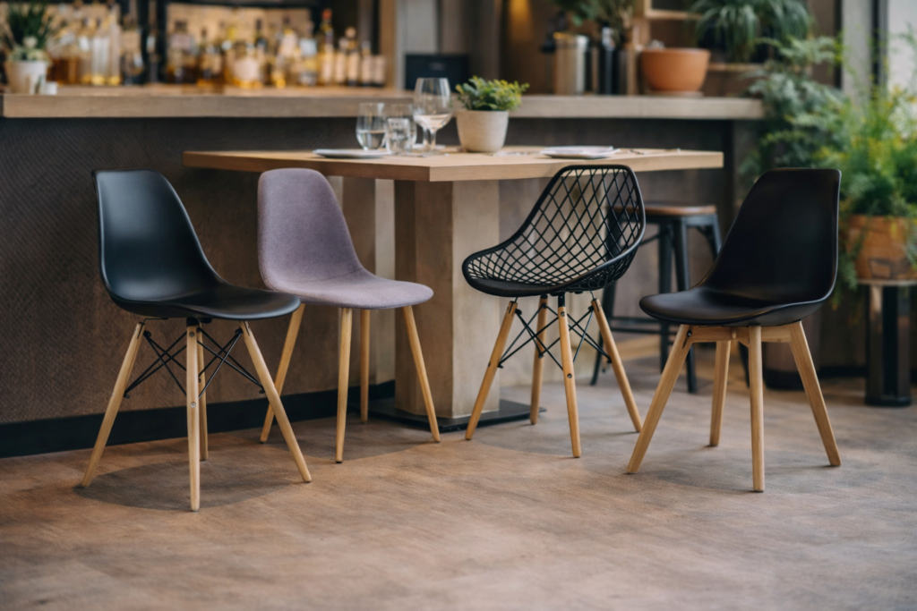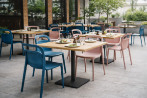 Contamos también con una selección de sillas y mobiliario de polímero importado, diseñados para ofrecer durabilidad, fácil mantenimiento y gran resistencia para uso comercial